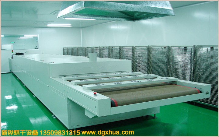 機(jī)臺(tái)結(jié)構(gòu):進(jìn)料段:1000mm(手動(dòng)調(diào)節(jié)門+垂簾),烘干段:4000mm(分2段加熱控制),冷卻段:200mm(4排風(fēng)扇), 出料段:800mm(手動(dòng)調(diào)節(jié)門+垂簾)。